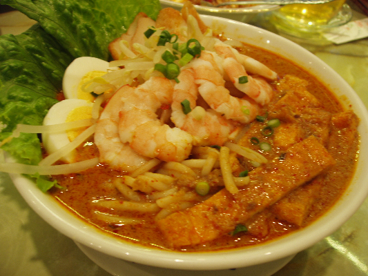 次はニョニャ料理を代表する麺料理「ラクサ」。マレーシアやシンガポールではもう国民食となっているので、このラクサが、実はニョニャ料理が元祖とは知らない人も沢山います。しかも場所によってココナッツ・ミルクが入ったり、タマリンド入りの澄んだスープ(ペナン風)になったり、色々なバージョンがあるのが特徴。