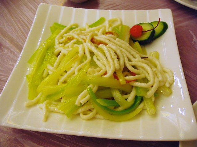 もうひとつ潮州料理でもよくみかける魚のすり身にでんぷんを合わせて麺状に押し出し、それを野菜などと炒めて食べる「魚麺」もあります。カマボコのような歯ごたえの麺に、しっかりダシが絡んで、これもなかなかオツな味です。