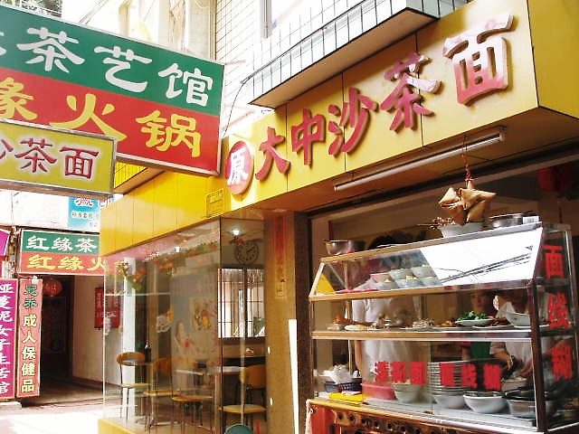 もうひとつ、あふれんばかりの人々が軒先まではみ出して沙茶面を食べていた