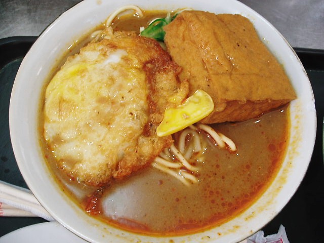 アモイの名物料理といえば、誰もが口にする「沙茶面」を書かないわけにはいきません。すりつぶしたピーナッツがたっぷり入った、甘くてほんのりスパイシーなスープに、丸太のイエロー・ミーが入った麺料理です。具は選べますが、厚揚げや海老、イカげそ、レバーなどの臓物類が色々入ります。