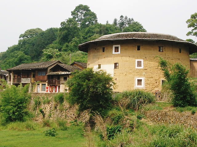 ここには西欧の要素を取り入れた海外でも有名な「振成楼」や、優美なお屋敷作りの「福裕楼」や「光裕楼」、ミニミニ・サイズのかわいい円楼「如昇楼」などの土楼郡が、ゆったりと流れる川に沿って建てられています。