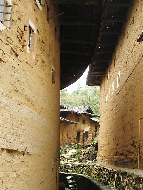 居住部分を1周してみようと試みましたが、そこは円楼の防災上の知恵か、所々ブロックされており、一気に回廊を回ることができないようになっていました。又新たに1階まで降り、別の階段を登り直さないと遙か先に見える円楼の住人には会いにいけないようになっているのです。