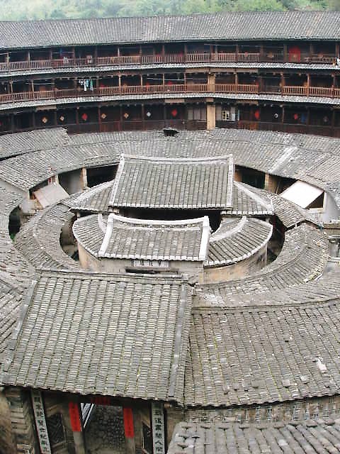 円形(現実には中が空洞の巨大な輪っか)でできた円楼は地震に強く、台風などの雨風にも強く、もとは福建の人が考え出した世界に誇れる建築物なのです。かつて福建省を大地震が襲った時、円楼だけはびくともせず残ったと言われています。