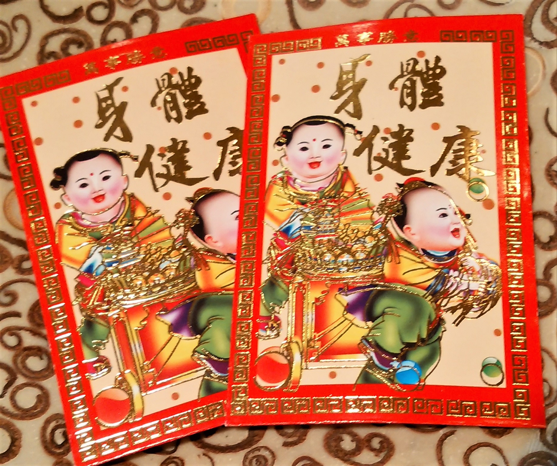 「身体健康」というユニークなアンパオ、こちらはペナンのもので、見ているだけでなんだか元気になりますね。