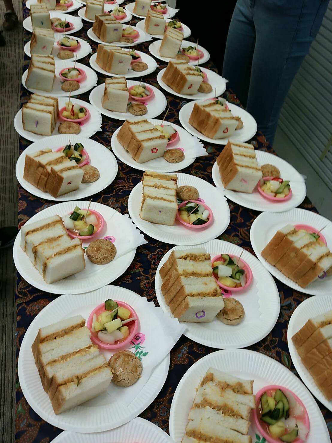 マカンマカンの平岡シェフが知恵を絞って準備してくださったのが、特製サンバルツナ・サンドイッチ。おまけでピクルスにアーモンドクッキー。それと私が持参したインドスナックのムルクなど。なかなかの内容になりました。平岡シェフのサンバルツナはニョニャレシピのオリジナルアレンジで、とても美味しかったです。