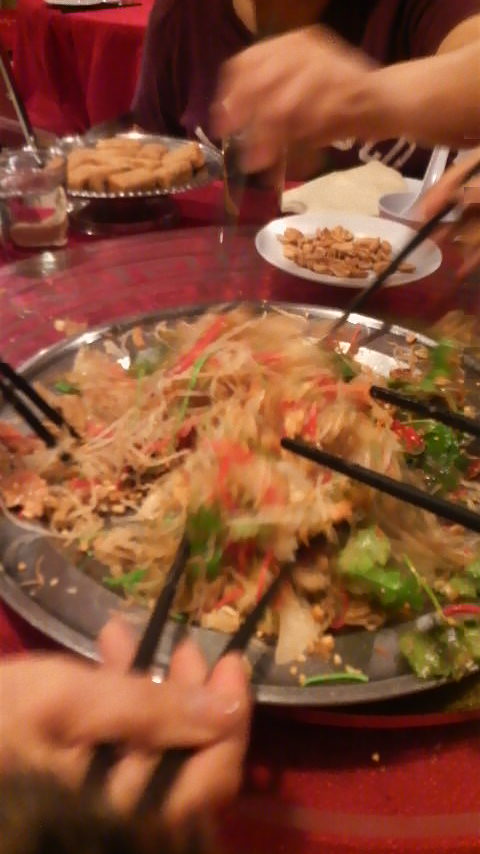 もう一軒のお薦めはこちらも賑わっていた「Good New World Restaurant(好世界酒家)」。ここでは春節の時に食べるイーサン・フィッシュ「魚生」が始まっていたので迷わずリクエスト!